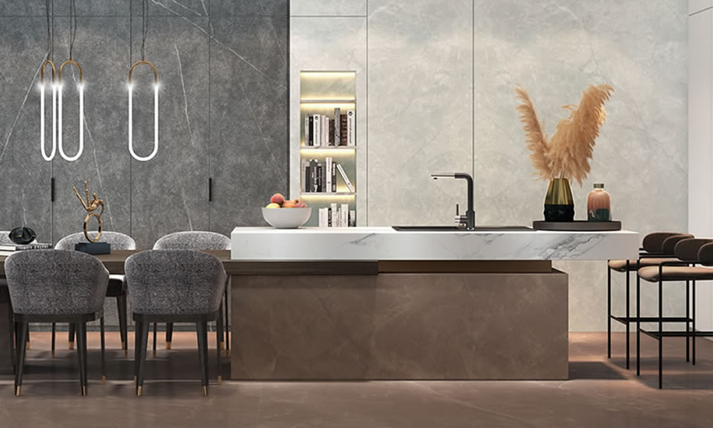 粵強瓷磚·巖板始終堅持以"傳承品質生活的質感瓷磚"為品牌定位,以獨特的審美觀和發掘力,不斷研發全新產品,將經典文化融入現代工藝技術,讓大家擁有富有藝術的質感生活空間。